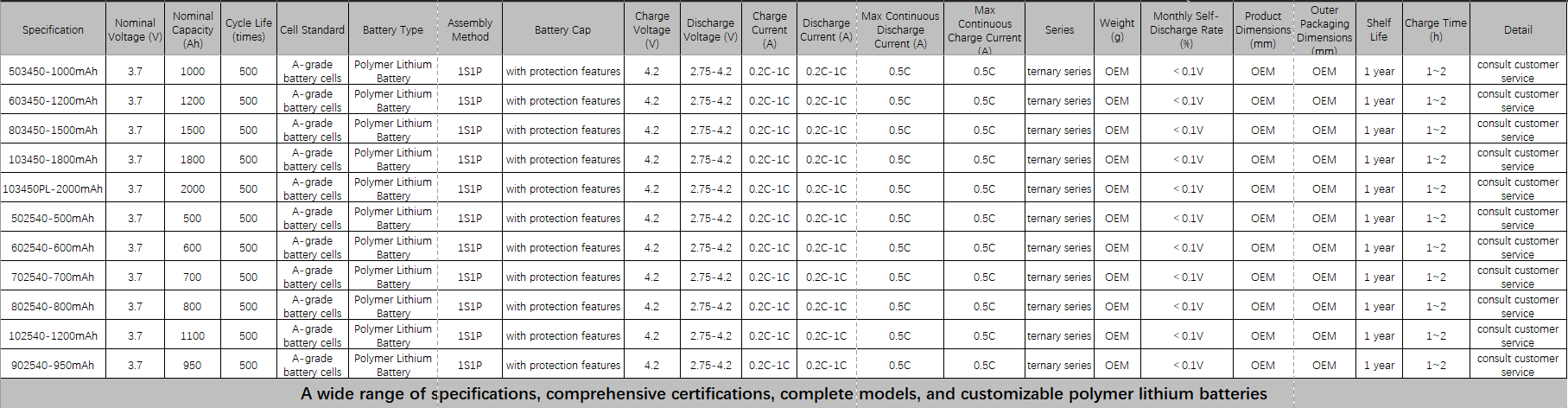 Polymer lithium batteries,803045-1500mAh Ternary High-End Customized Battery with NTC Temperature Control for Electric Toys and GPS Trackers